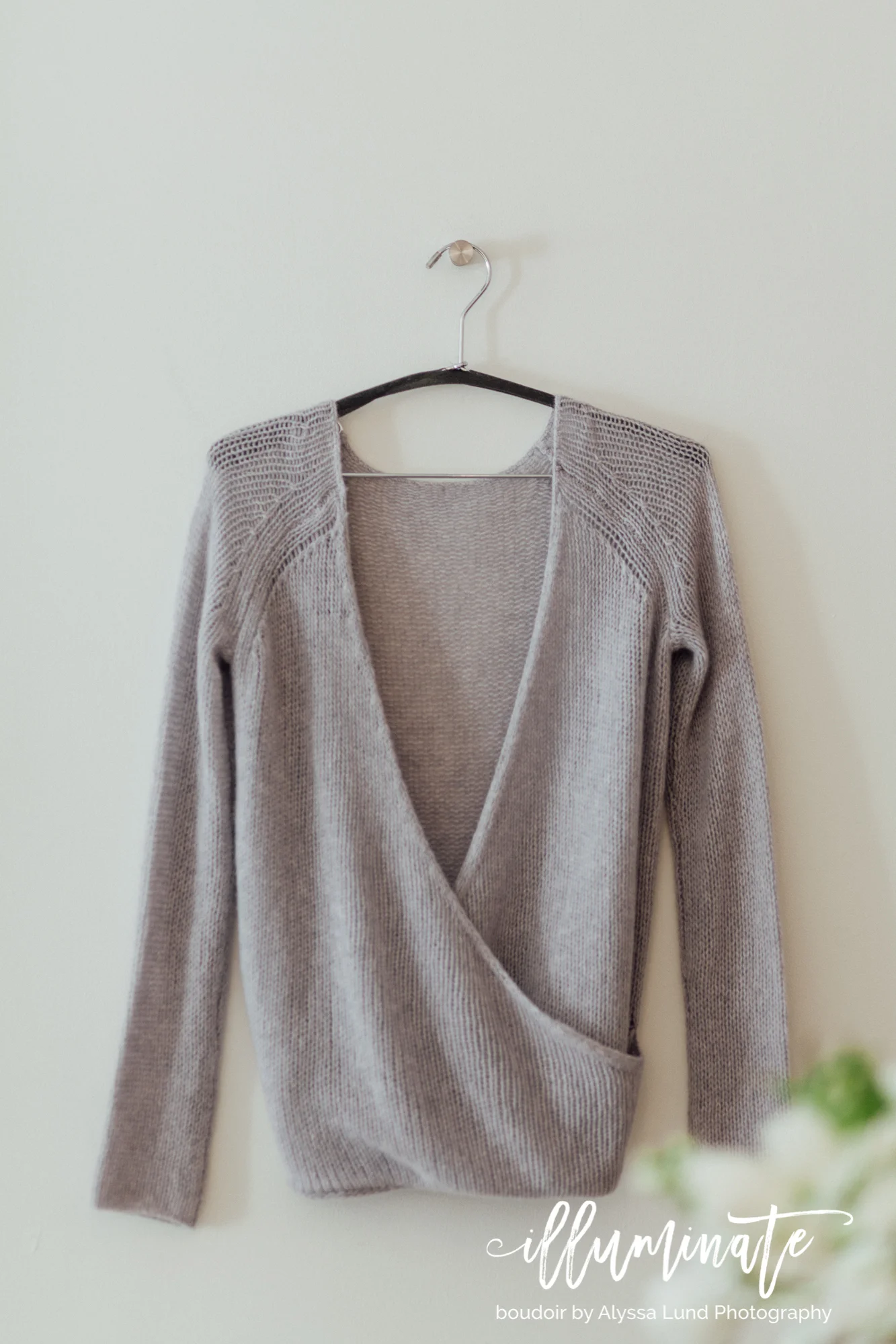 Choose some dreamy loungewear to add in variety or for a style that’s a bit more modest! Beth loves playing with texture - like pairing a really nubby cable sweater with a soft pair of undies. She also loves this soft, open-weave sweater with a stunning open back (check it out below!)- “you could wear this with a cute little ruffle bottom or a ruched-back nicker… you can really show skin where you feel comfortable but feel more covered too.”