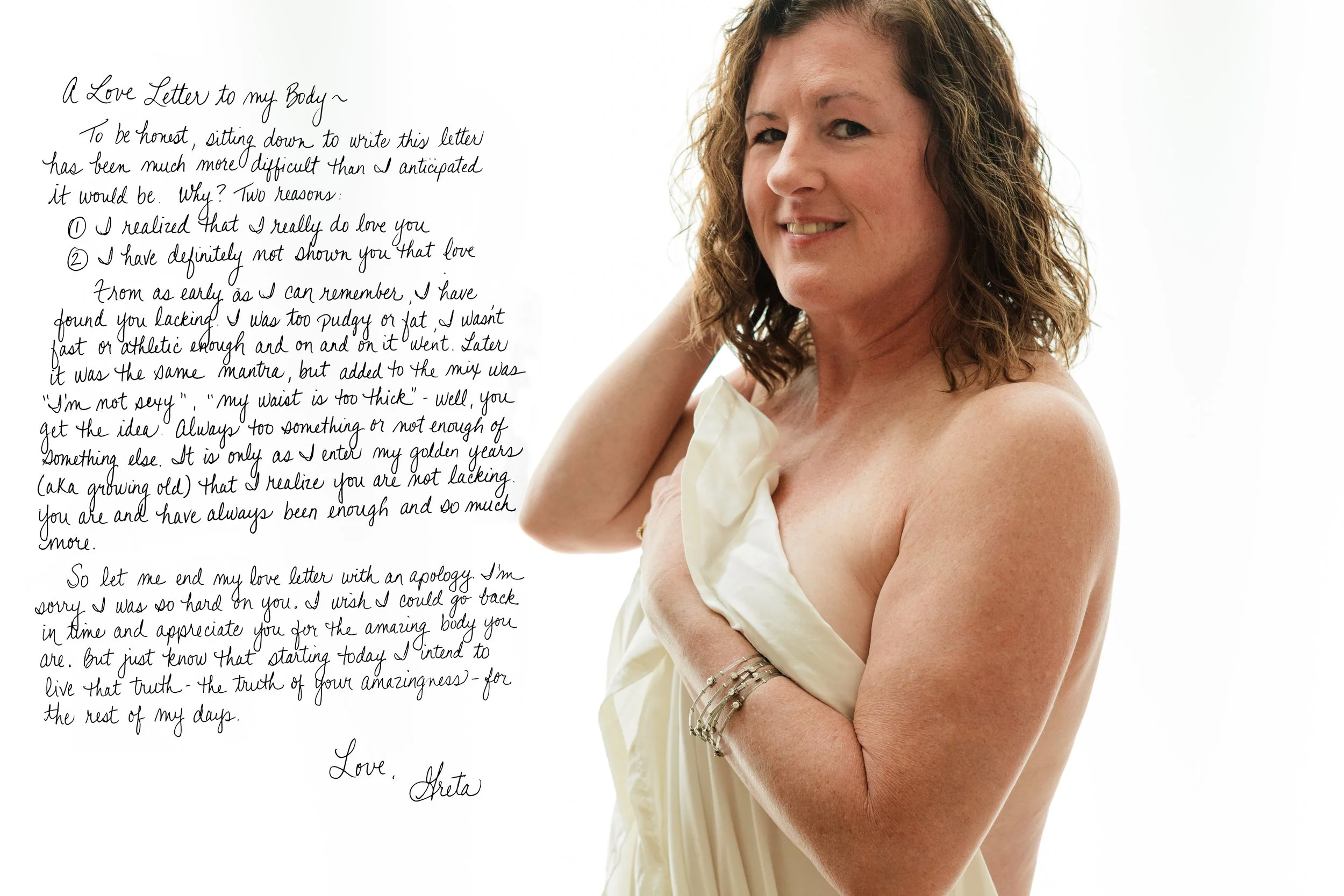 Greta also participated in my Dear Body project, so as part of her session she wrote a love letter to her body that I incorporated into some of her portraits. Her letter, entitled “A love letter to my body,” truly made me weep. Greta reflected on how she didn’t feel practiced in this level of vulnerability and self-love, as it was not a norm she was raised with, but she felt a yearning to practice and embrace this depth of self-compassion in this current season of life. I get goosebumps when I read her letter, and I hope something in her honest, heartfelt words resonates with you too.